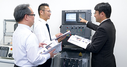 三菱電機メカトロニクス製品の生産・開発拠点である、産業メカトロニクス製作所内にあるソリューションセンター。お客様に最適なソリューションをご提供します。