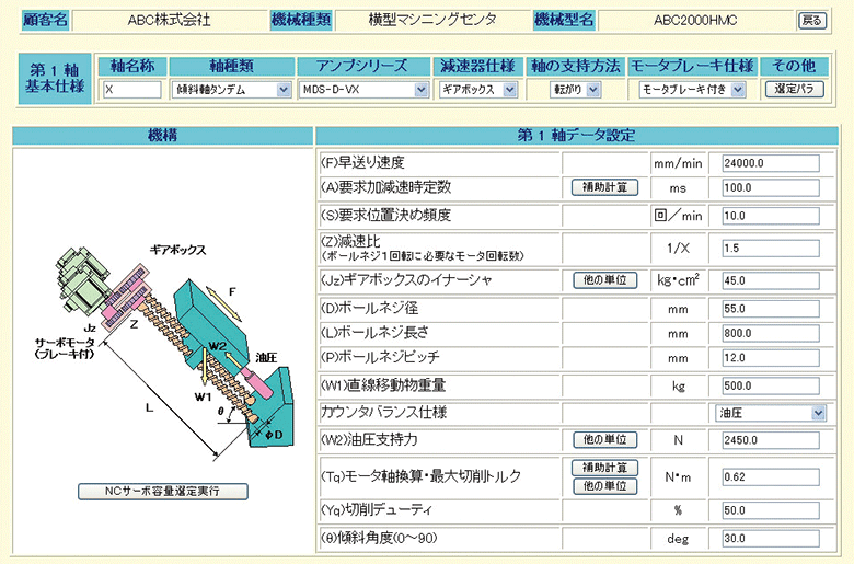 他にも主軸加減速時間の計算やパワーサプライユニットの選定も自動で行います。