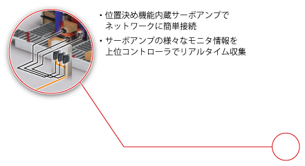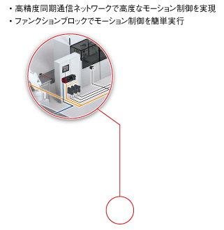 一般的な高速I/O制御、コントローラ間分散制御に加え、高精度同期に対応したモーション制御、複数の安全機器をつなぎ安全情報を共有する安全制御を1ネットワークで構築できます。