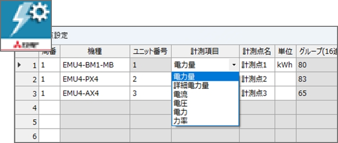 - 2.エネルギー計測パラメータを設定(プルダウンから選択できます)