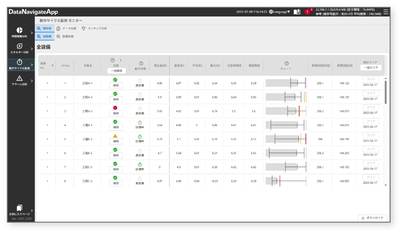 目的に合わせてアプリを使用することで設備の可視化や分析による気づきが得られ、現場改善が期待できます。