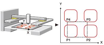 1回の始動で、複数の位置決めデータ群にしたがって順次運転します。 同じ軌跡を何度も繰り返す場合などに使用することができます。