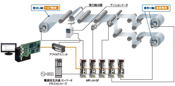 巻出し、巻取りなどの速度・トルク制御にも、シンプルモーションボードを使用することができます。