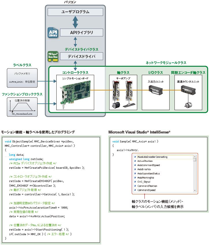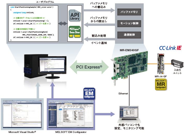ユーザプログラムからPCI ExpressR経由で、シンプルモーションボードにアクセスするソフトウェアです。