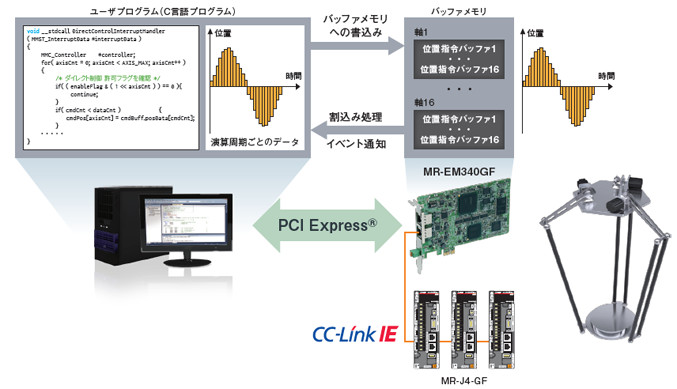 ユーザプログラムからセットされた演算周期ごとの位置指令をサーボアンプに送信して、サーボアンプをダイレクトに制御する機能です。