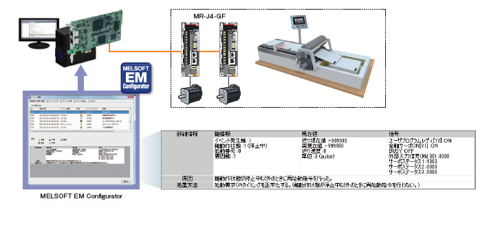 プログラム書込み操作、エラー発生等の情報が時系列で一覧として表示されるため、トラブル発生時の原因調査、サーボアンプ復旧対応を迅速に行うことができます。