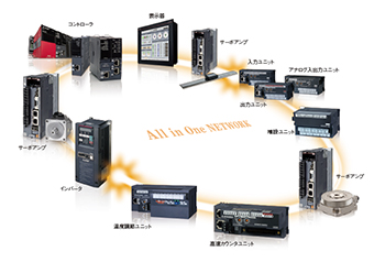 - 一つのネットワークで、サーボアンプ、I/O、高速カウンタなど様々なフィールド機器を自由に接続できます。