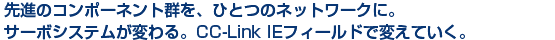CC-Link IE フィールドネットワークは、モーション制御に必要な同期性とEthernetの汎用性を両立させたネットワークです。
