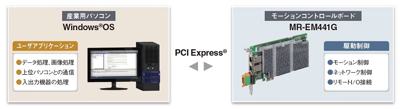 産業用パソコンのPCI Express®拡張スロットに接続し、高速高精度なモーション制御を実現します。