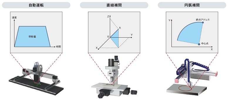 | 円弧補間 | ポイントテーブル方式, 2軸 |