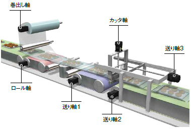 巻出し軸からカッタ軸までの全軸を主軸に同期させて同期制御が行えます。