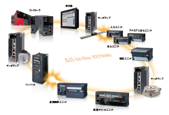 - 1つのネットワークで高速なI/O制御からモーション制御までカバーし、機器のレイアウトに合わせた自由度の高い配線性を実現。
