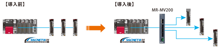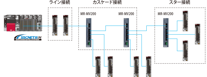 分岐することで、高性能サーボアンプMELSERVO-J4シリーズをフレキシブルな配線で分散配置できます。