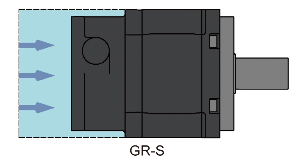 さらに差動遊星減速機構(GR-S)を採用することで減速比1/15~1/60を1段構造で対応し、全長を短縮!