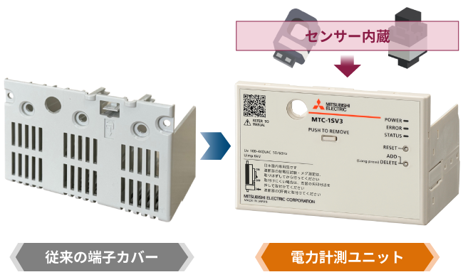 電力・電圧センサーを内蔵し、従来の端子カバーと同等サイズを実現!