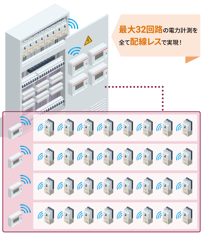 配線レス・省スペースにより、電力の “見える化” と施工の “省力化” を同時に実現。