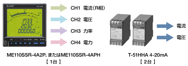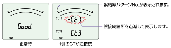 1:電流・電圧入力端子のいずれかを誤結線している場合に誤結線箇所を判別しやすくなります。