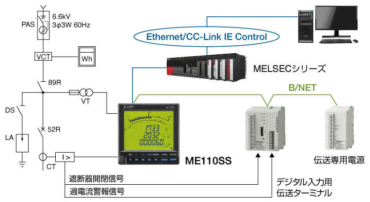 また、B/NET伝送品およびCC-Link通信品にデジタル入力(DI)を3点ラインアップしていますので、警報接点出力を本体へ入力、中央装置へ伝送することで接点状態の監視を行うことが可能になります。
