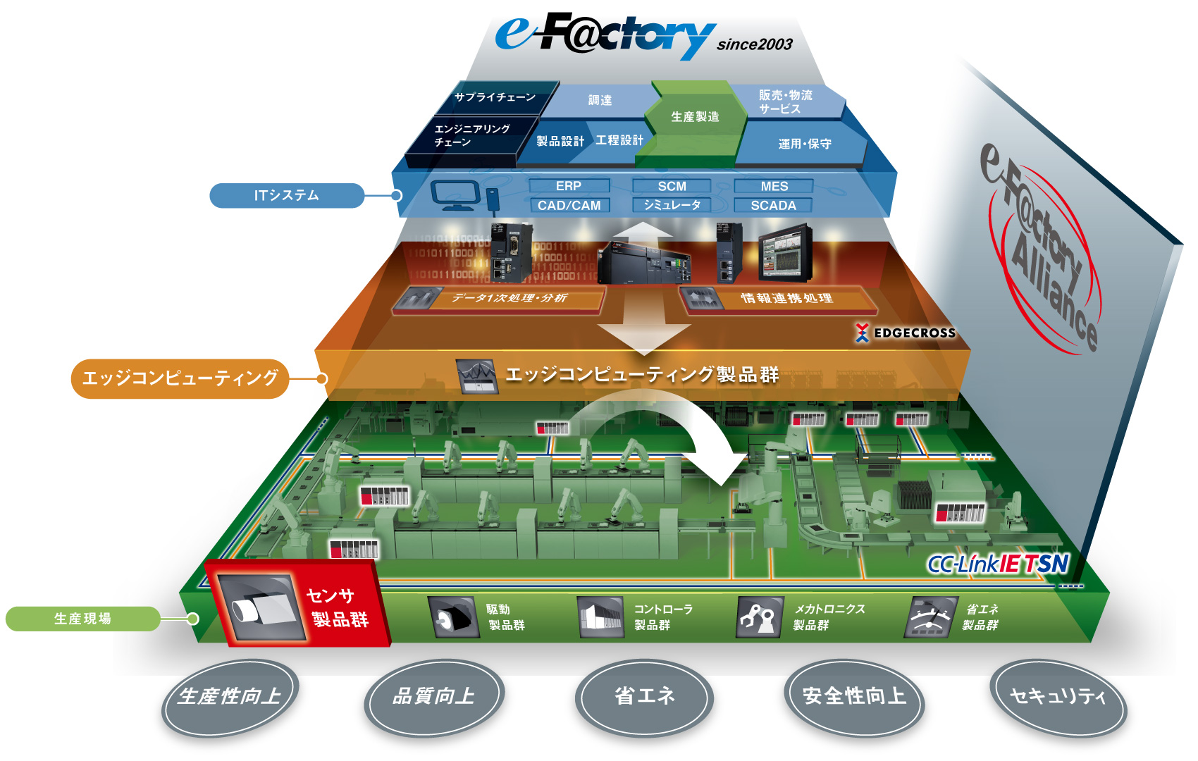 MELSENSORは、生産現場の計測データのシームレスな収集・管理により、お客様のe-F@ctory導入を支援し、ものづくりのIoT化をさらに推進します。