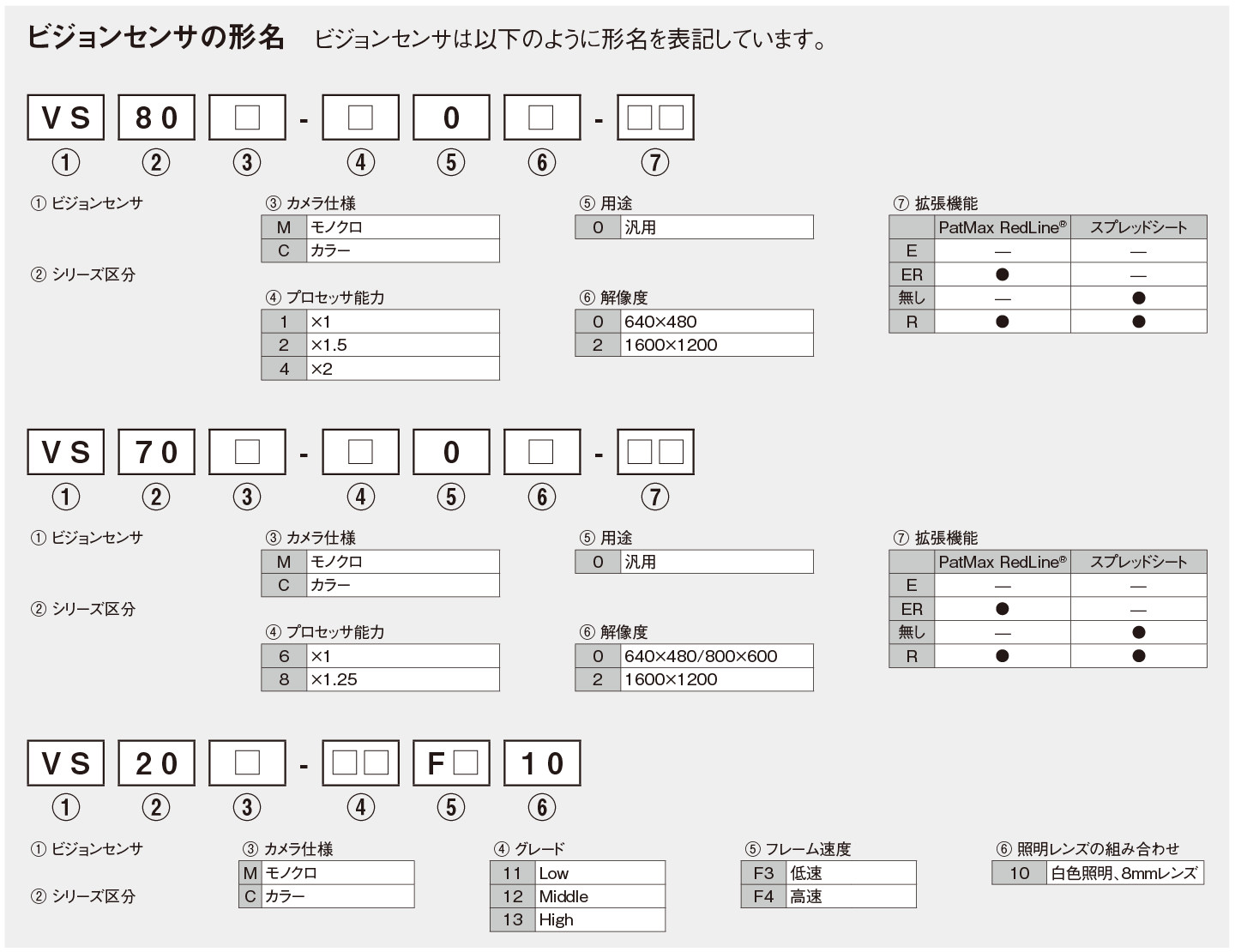 モノクロ 640×480 プロセッサ能力1.5× スプレッドシート対応 PatMax RedLine®搭載 |
