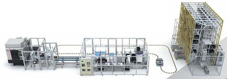 ITEIでは三菱電機の協力を受け、e-F@ctoryのコンセプトを応用したモデルラインを構築し、検証を行っています。モデルラインではe-F@ctoryで加工から組み立て、物流までの一連の工程を自動化しており、ユーザのオーダに合わせた変種変量生産が可能なことを実証しています。