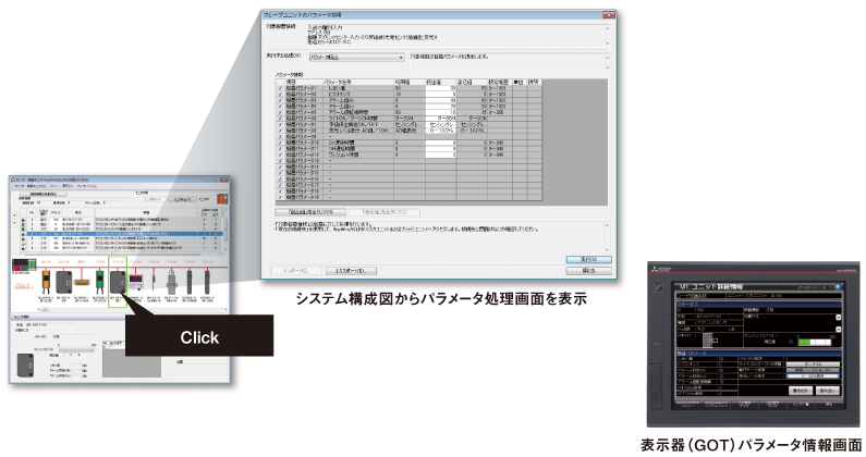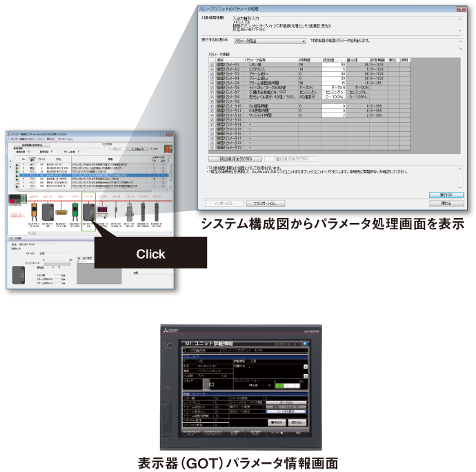 エンジニアリング環境や表示器(GOT)から異なるメーカーのセンサを統一した操作でパラメータ設定できるので、作業時間を短縮できます