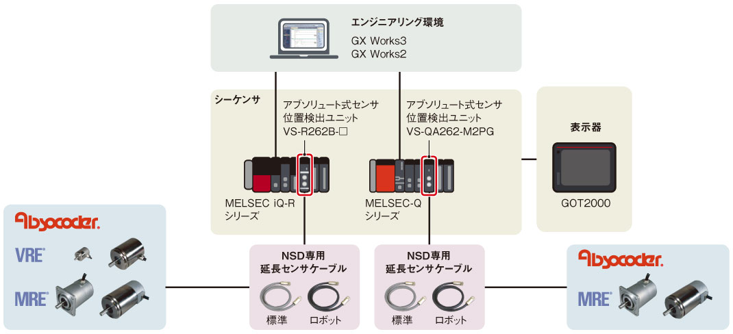 - MELSECに直接装着してアブソコーダ®(位置検出センサ)と省配線接続を実現するユニットです