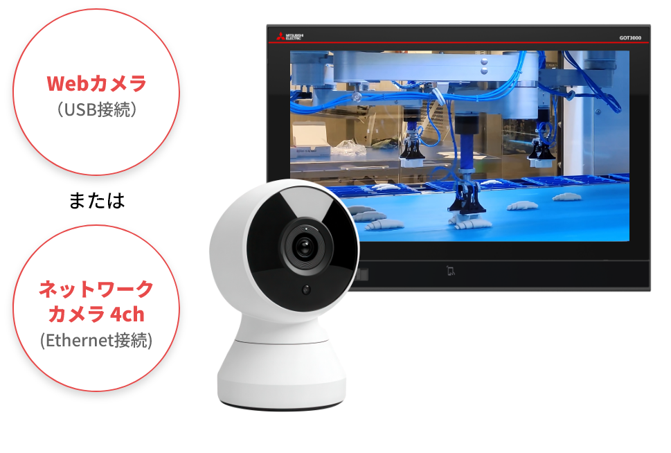 GOT3000からケーブル1本でモニタ・カメラにつながる